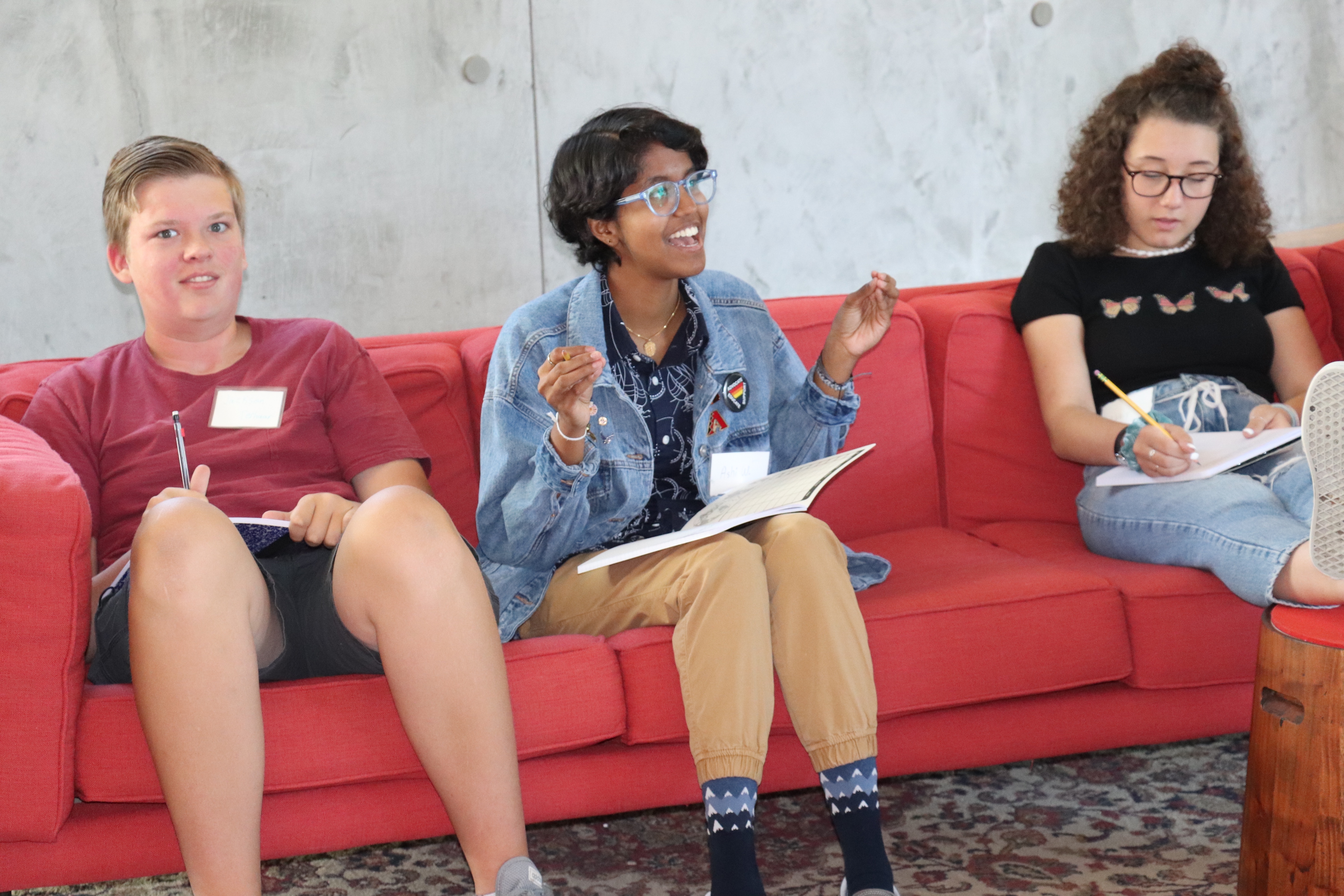 The first draft of this blog post was actually written in cursive minion and the style of communist propaganda posters—some popular means of communication on Megan—but fear not, I’ve translated for your reading experience. As Bob Marley would say, “Every little thing is gonna be alright,” especially as we recount the first full day of the 2019 Young Writers’ Workshop.
