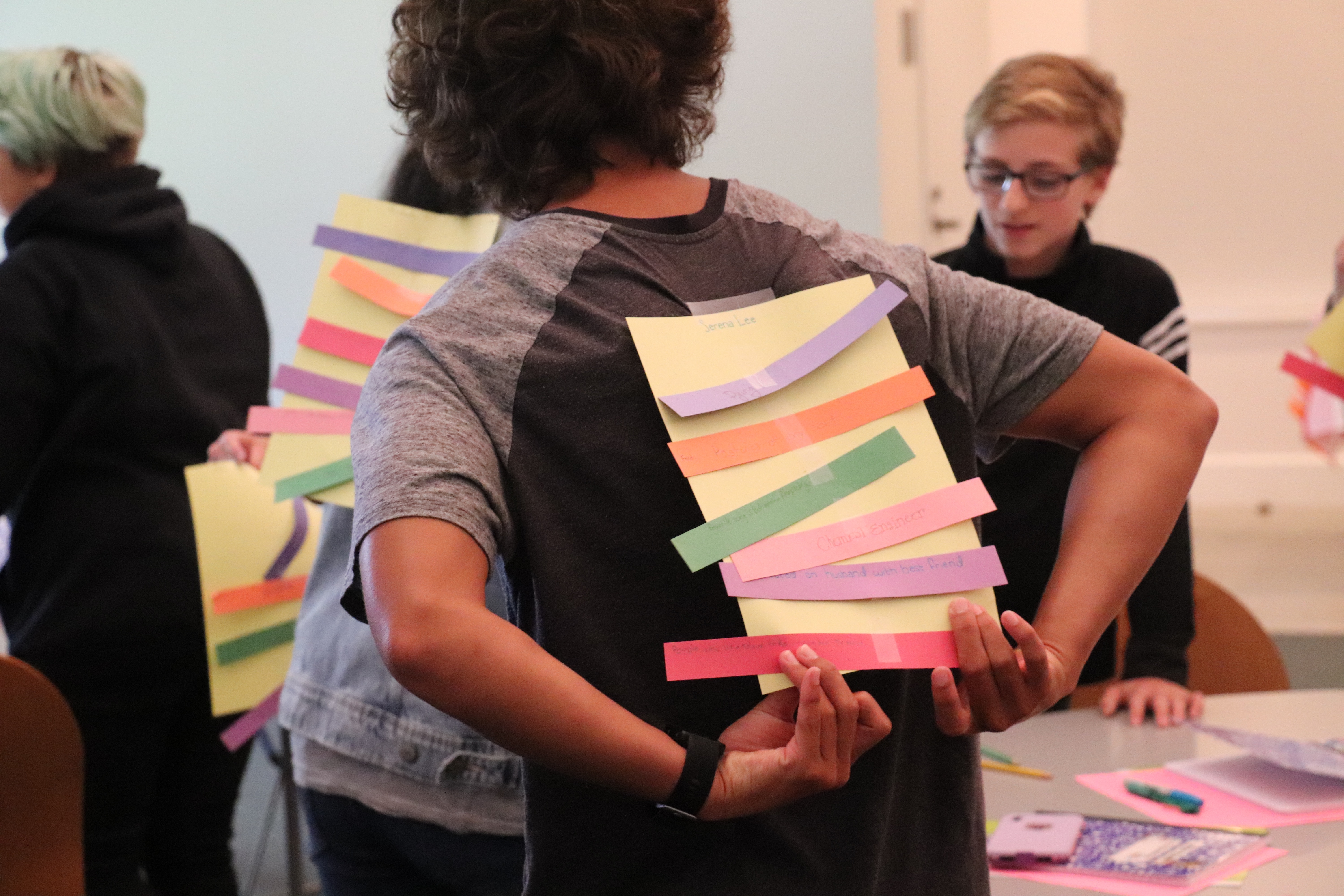 The afternoon centered around character development, beginning with a group activity to generate a set of eclectic characters and choose our favorites. We took a break from Bob Marley to listen to Ricky Martin while compiling characteristics on each others’ backs to build our character profiles.