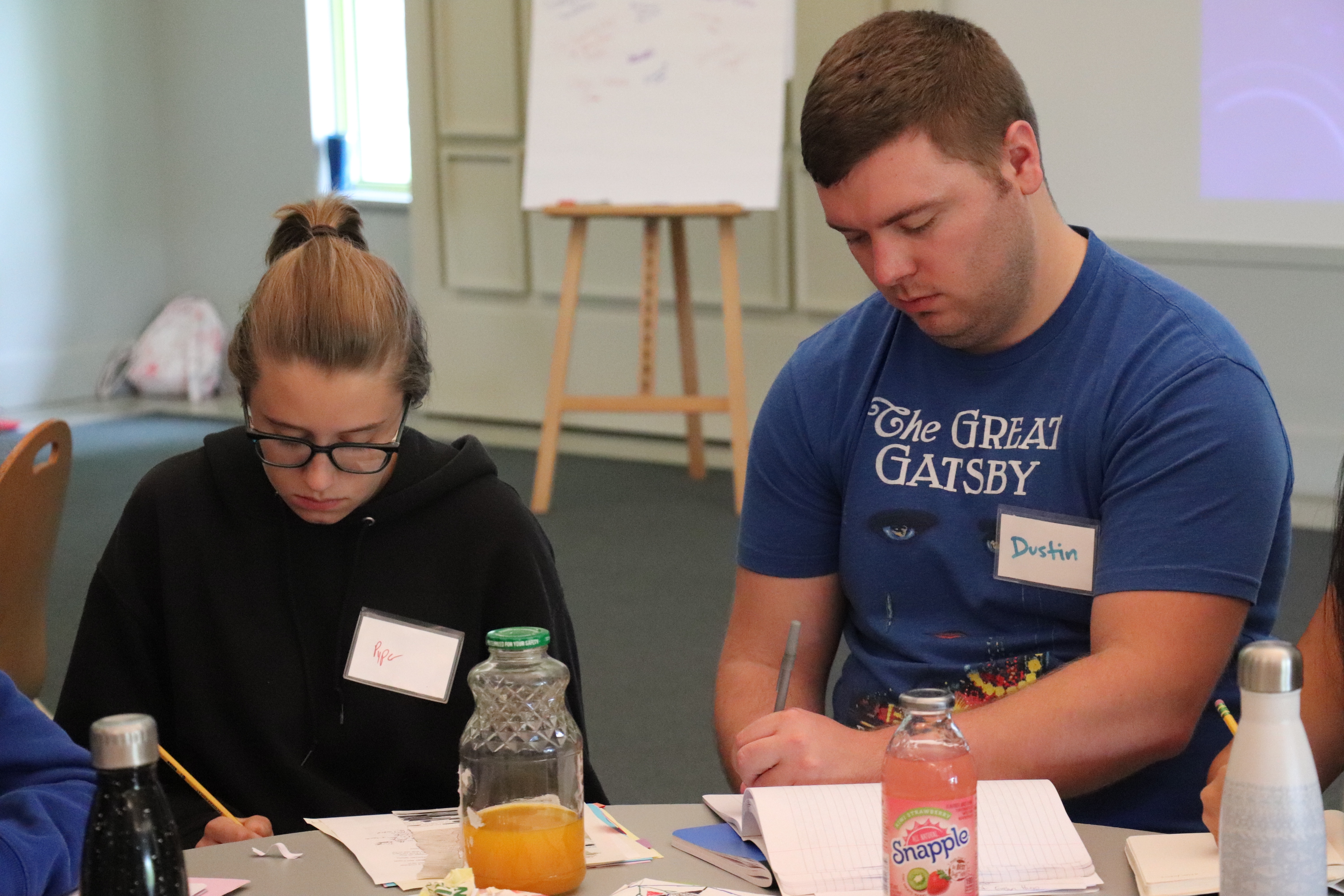 Pyper works on her writing alongside Instructor Dustin Vann.