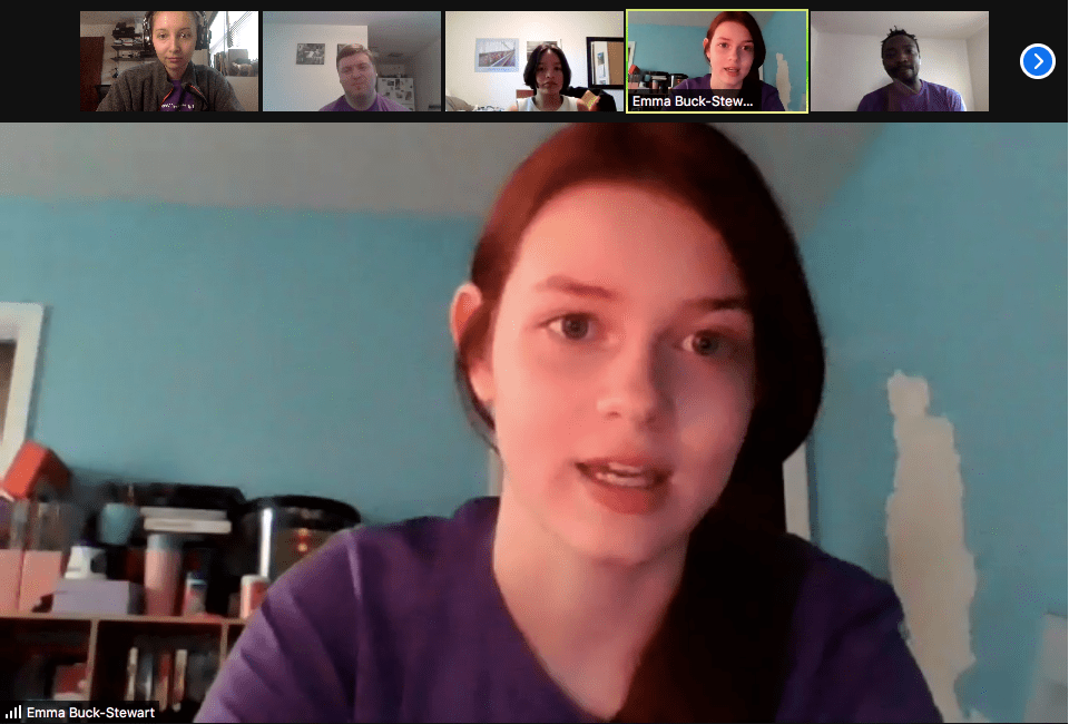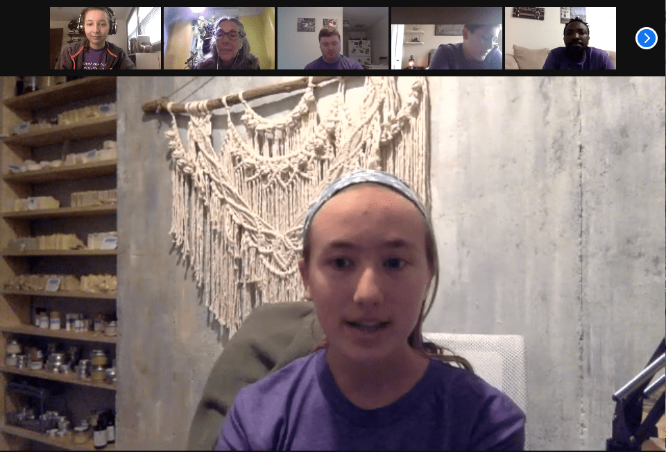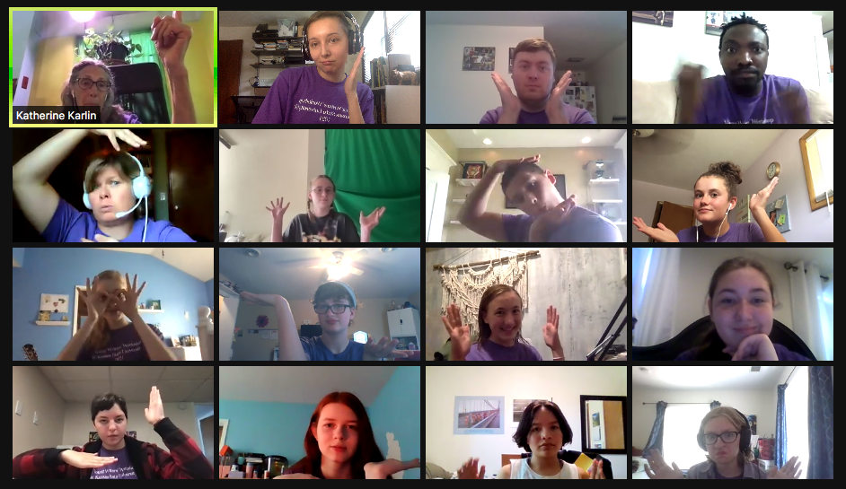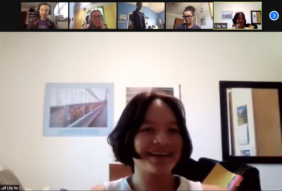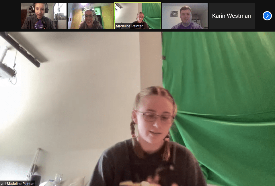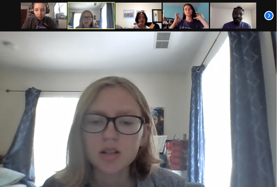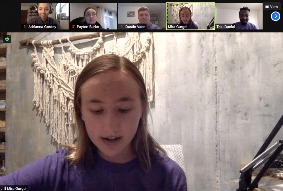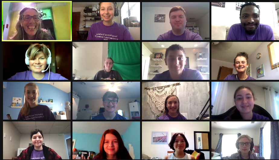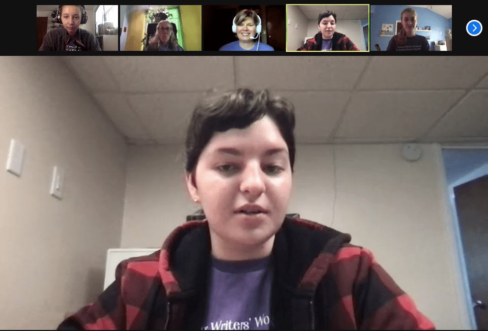 Katy Karlin, the director of the Young Writers’ Workshop, gave opening remarks that thanked our generous donors, Helen and Duke Dupre, as well as commemorated the Young Writers’ Workshop’s partnership with the Marianna Kistler Beach Museum of Art. Afterwards, our instructors introduced their small groups. Dustin introduced the Dino Chicken Nuggets, Tolu introduced the Champions, and Krista introduced the Society of Mysterious Women. Each young writer had three minutes to present their work, and they all filled their time with the short stories and poems they’ve worked on this week. Guests, staff, and other young writers used the chat to encourage each other and celebrate everyone’s excellent writing!