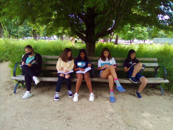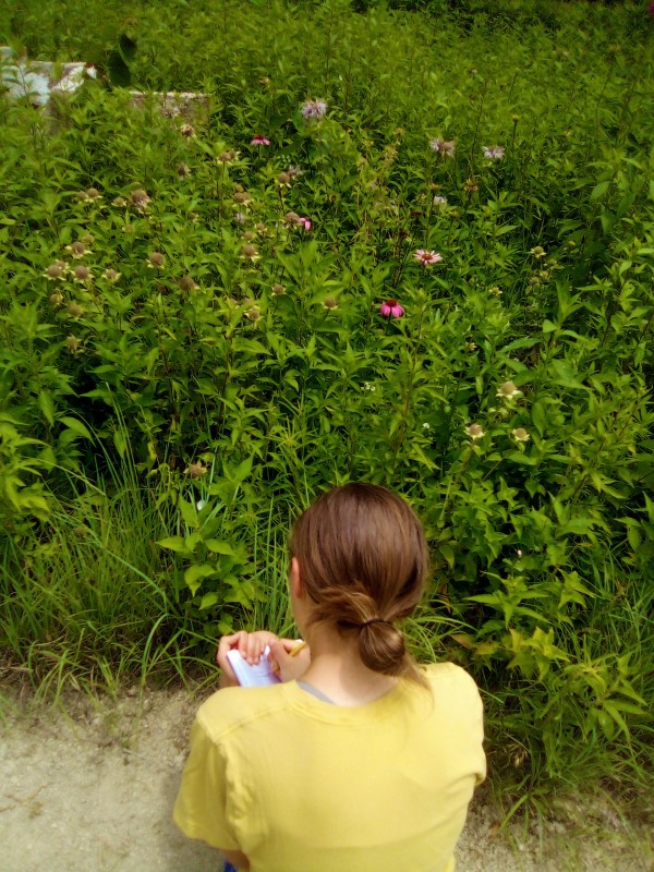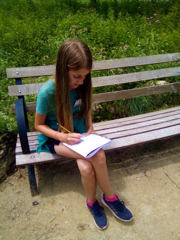 Then, she led us outside to take advantage of the beautiful weather—and to switch up our point of view. Among the flowers in the field, each young writer chose an animal or object and wrote from its perspective, giving us insight into the inner thoughts of trees, lamp posts, and more.