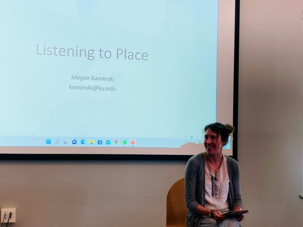 Next, visiting writer Megan Kaminski, an associate professor at the University of Kansas and author of the poetry collection Gentlewomen, joined us to delve into more nature-inspired poetry. First, she led the young writers through breathing exercises intended to ground them to the earth and open them up to energy from the sun. After a discussion of sensory experience and its importance to the craft of writing, she took us outside once again in order to facilitate interactions between the young writers and the nonhuman world.