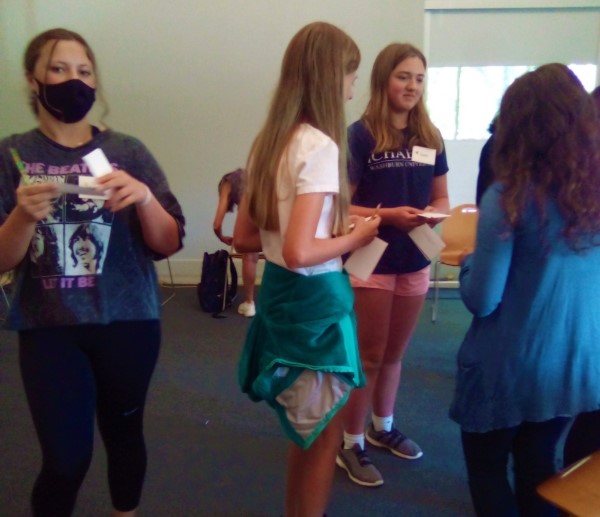 The theme continued with our first writing exercise: musical Mad Libs based on Kate Bush’s “Running Up That Hill.” After a lyrical analysis and a discussion of how lyrics are related to poetry, each small group created their own unique version of the song, from the Investigators’ murder mystery theme to C3 taking the point of view of a pet dog.