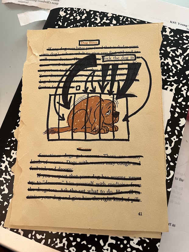 For the young writers’ final activity of the day, they wrote some blackout poetry! This activity involves ripping out a page in an old book or magazine, finding words to make a poem, and then blacking out the rest of the words with a sharpie or pen. For their first poem, they were tasked with writing a ten-word poem.