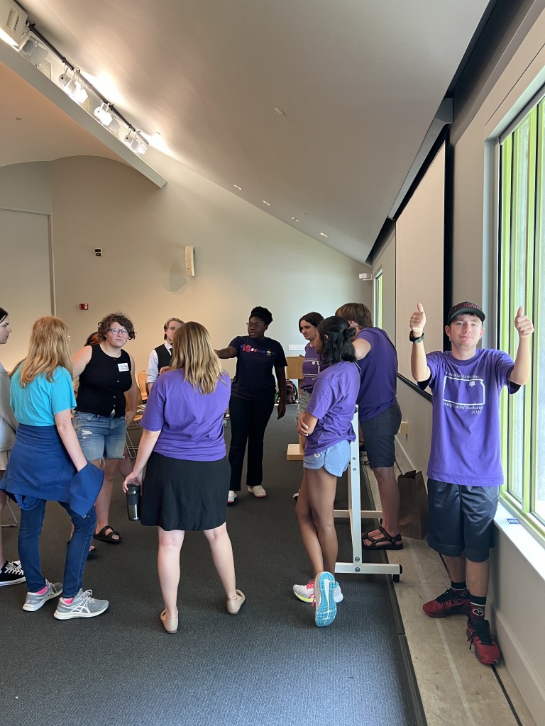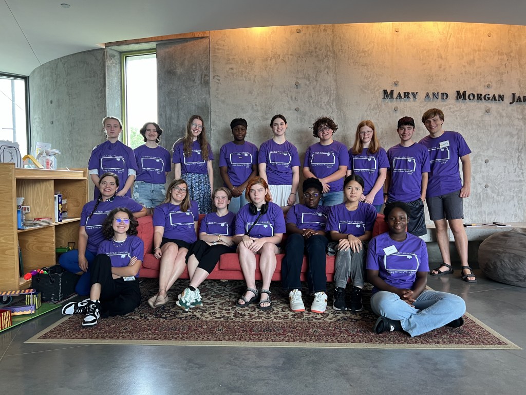 Once the writers had settled in, they received their specially made 2024 Young Writers’ Workshop t-shirts, and we embarked on a journey to the Marianna Kistler Beach Museum galleries for a group photo.