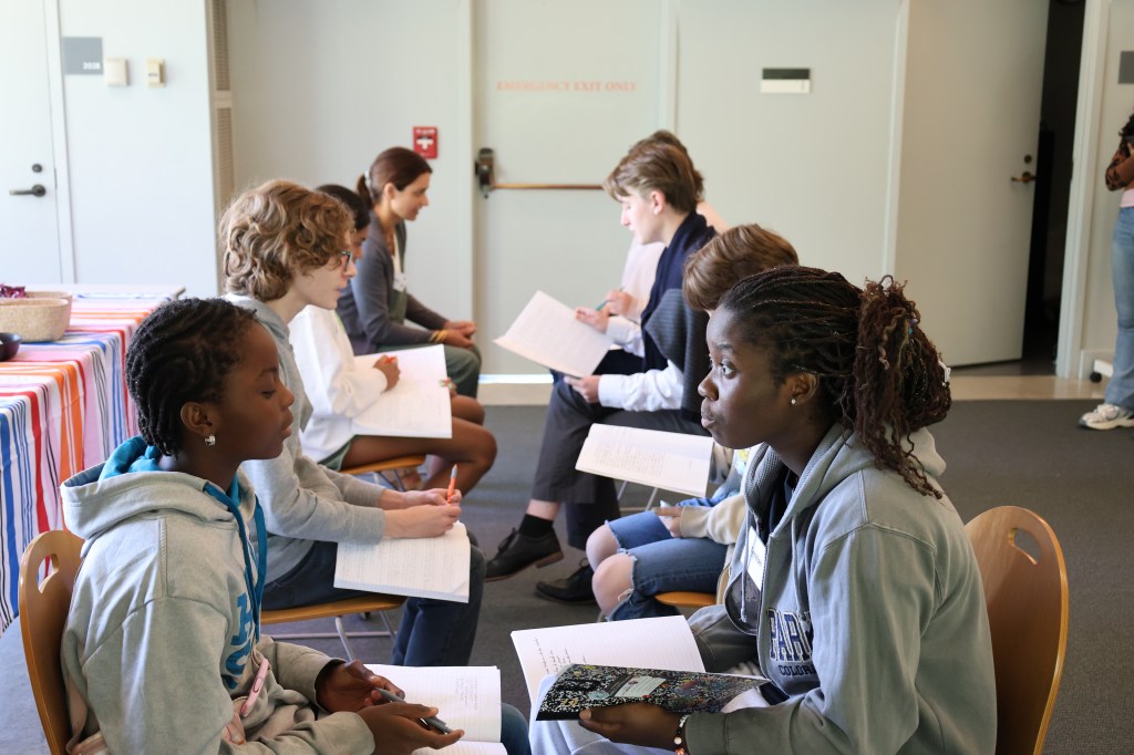 After learning so much about from Amanda about the fiction writing process, Maranda led the students to create a flash fiction using an inspiring object. Can you guess the material? Art! Our students wrote stories using art works that appealed to them. It was a rich experience because some used the same art work they used to create poetry on Tuesday, while others chose entirely different art works! After writing, they formed pairs and read their stories to each other!